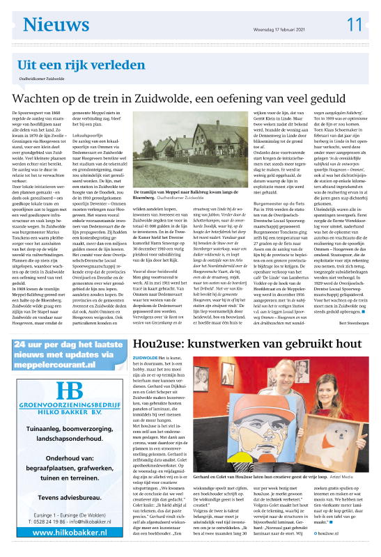 - Hou2use: kunstwerken van gebruikt hout, 17 februari 2021, Wolder Courant